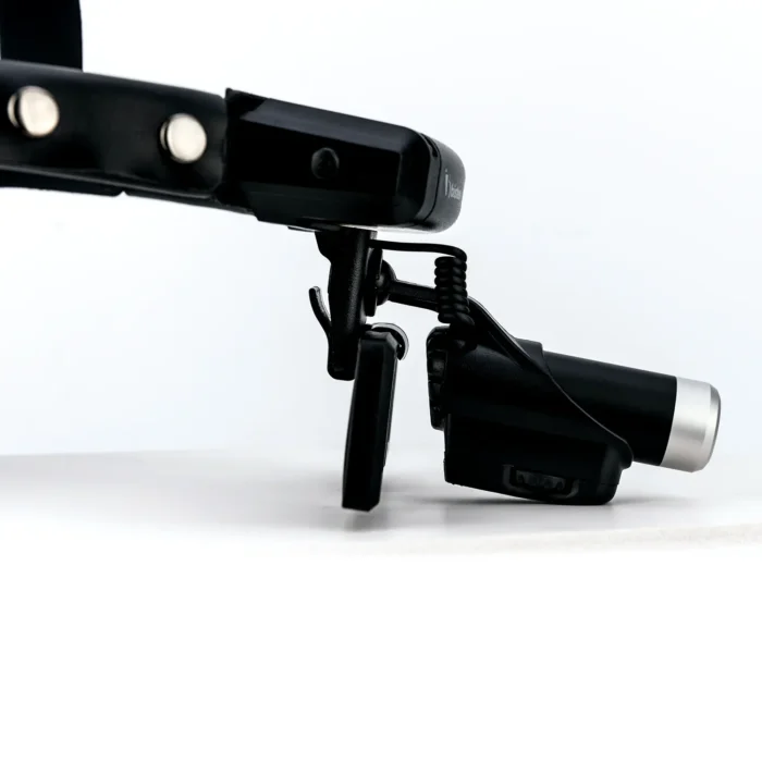 El BT-410 es un dispositivo que se utiliza para realizar exámenes médicos fijándola en la cabeza e iluminando con luz condensada la parte lesionada, se puede utilizar en todos los campos médicos, excepto en oftalmología. Todo el material está hecho de plástico ligero y consta de un cuerpo principal y una banda para la cabeza. El cuerpo principal está compuesto por una fuente de luz (LED), un marco principal y una batería. Los accesorios opcionales consisten en una lámpara astral para un efecto sin sombras y una lupa. La batería es recargable de iones de litio y el tiempo de funcionamiento es de aproximadamente 4 horas.